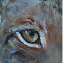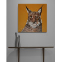Hand painting by artist Marike Koot. Artwork: Lynx portrait on yellow back.