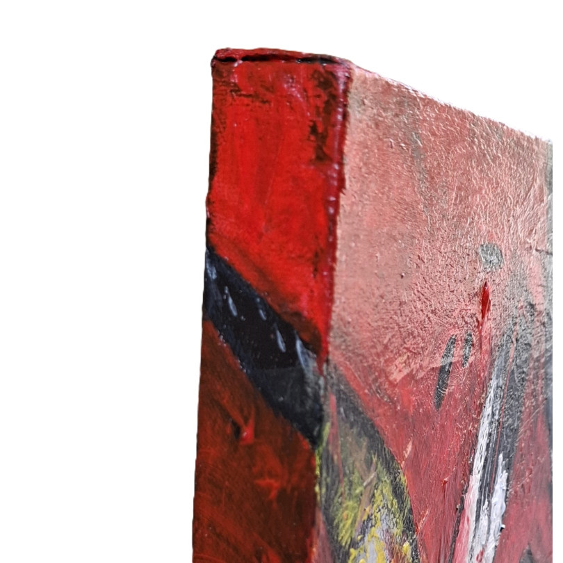 More information: This dynamic piece showcases an explosion of vivid colors against a deep red background. Abstract, organic shapes appear to float in harmonious motion, evoking an underwater dance. Each element is enriched with varied hues—blue, yellow, white, and black—offering striking depth and contrast. Bold black outlines emphasize these forms, creating a sense of relief across the canvas. Flecks of white punctuate the composition, adding an energetic dimension to the whole. The daring use of red as the backdrop lends the piece a unique warmth and vitality. The juxtaposition of tones and shapes suggests a universe in constant flux, captivating both the eye and the imagination. This artwork is a visual celebration of movement and color, engaging the viewer with its expressive energy and harmonious complexity.
