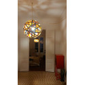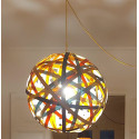 Materials: Natural wood veneers, oak, ash, cypress, maple stained light blue, dark blue, orange, pink and yellow. Varnished with water base paint. LED Globe Bulb G120 220-240 V, 16W. Yellow ceramic bulb holder. Yellow textile cable 5m