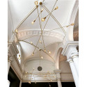 Materials: 12 mm brass tubes, moving connections, 18 light points (dimable LED bulbs), E27 brass bulb holders, brass cover bulb holders