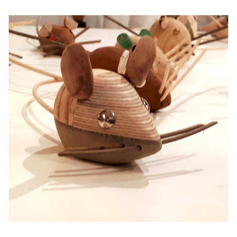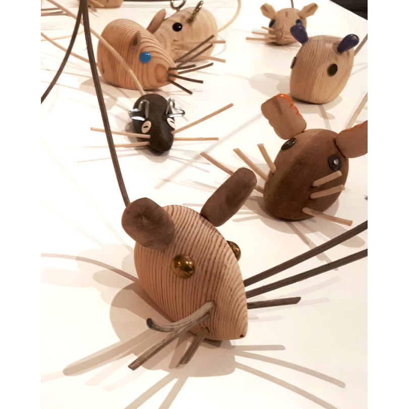 “Criaturas” , Trofeos en papier mâché y "Peces" son piezas únicas llenas de humor y de escarnio.