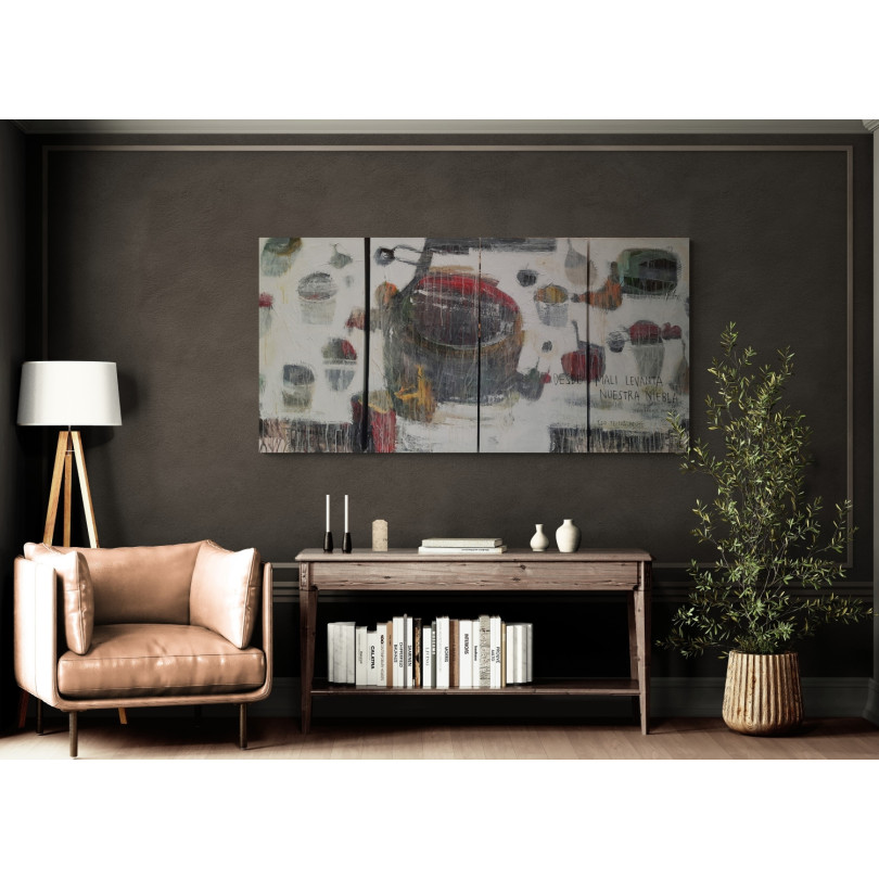Dimensiones: Cuadríptico 160 x 80 cm (cuatro paneles de 80 x 40 cm), grosor: 35 mm