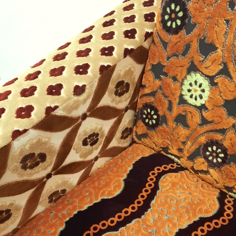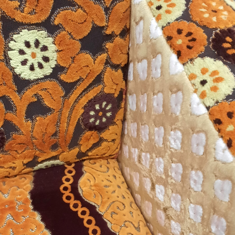 Vintage tapissé de velours africains. Pièce unique de la collection Maguela Tarami pour Ici et Là.