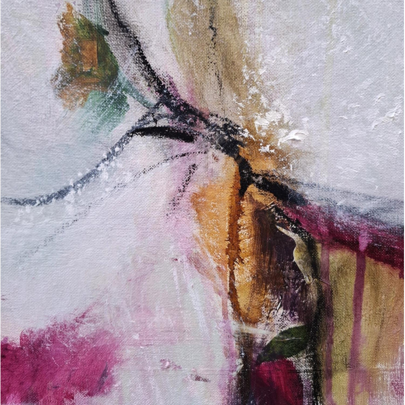 Peinture florale contemporaine : magnolias blancs et roses, élégance et harmonie