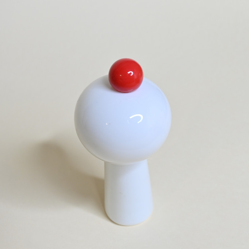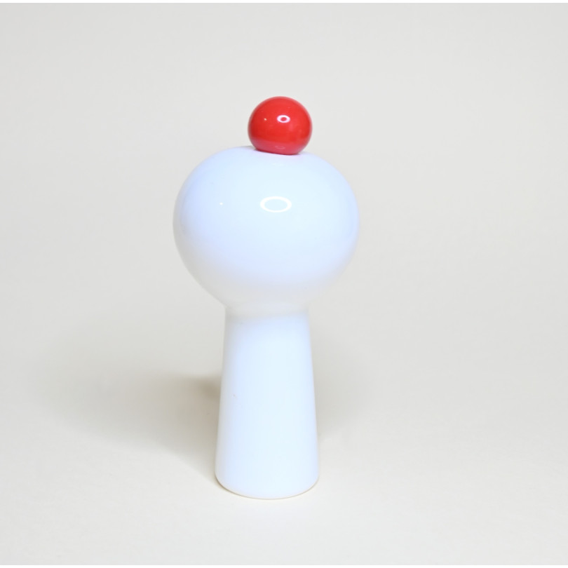 L'expérimentation avec ce matériau dense, minéral et visqueux visait à transformer la bulle de verre classique en formes géométriques : le cône, le cylindre, la sphère...mais en me plongeant dans la danse ludique du verre en fusion - son mouvement et sa fluidité émotionnelle - des analogies visuelles ont émergées, évoquant de manière poétique la condition humaine." The Glass apprentice